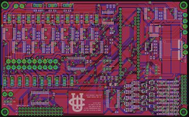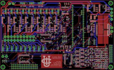 The rocket's avionics system consists of two boards: the Engine Control Unit (ECU) and the Flight Control Unit (FCU). I am responsible for the design, fabrication, and assembly of ECU which is pictured below. The board has 10 MOSFETs for solenoid control, a dual H-Bridge motor driver, 10 thermocouple amplifiers, 3 15-channel multiplexers, 13 current sensors, logic level shifters, and a 4 channel 16 bit ADC for the systems pressure transducers. The board was designed using Eagle and was assembled by hand. It is currently being programmed and will be tested during the next static test fire.